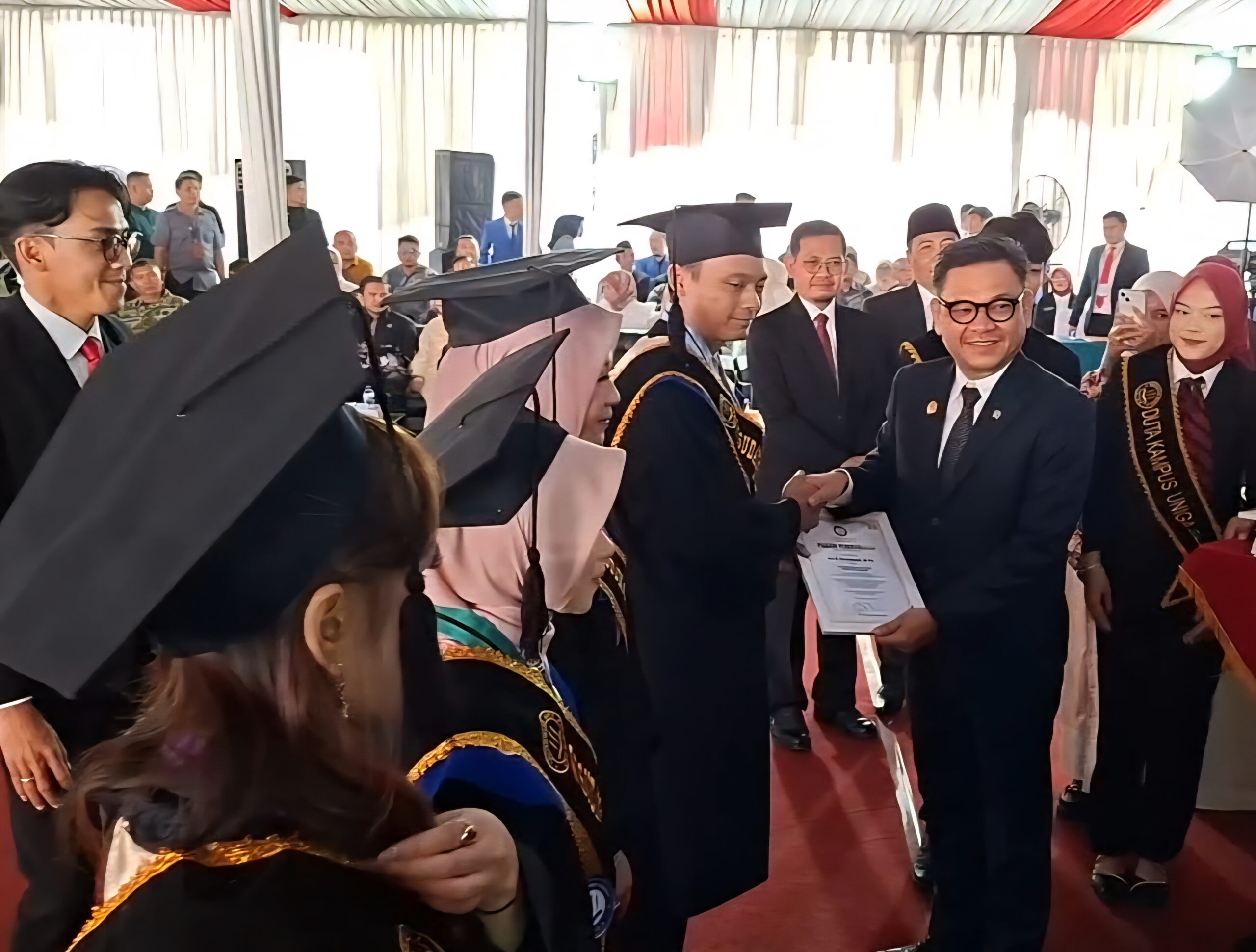 “karena wisuda hari ini bukan hanya momen seremonial belaka, tetapi merupakan refleksi kontribusi dalam mencetak generasi muda yang cerdas, kritis dan berkarakter kebangsaan yang menyongsong Indonesia emas tahun 2045,” kata TB Ace Hasan Syadzily, Sabtu (14/2/2026), di hadapan ribuan peserta wisuda.
